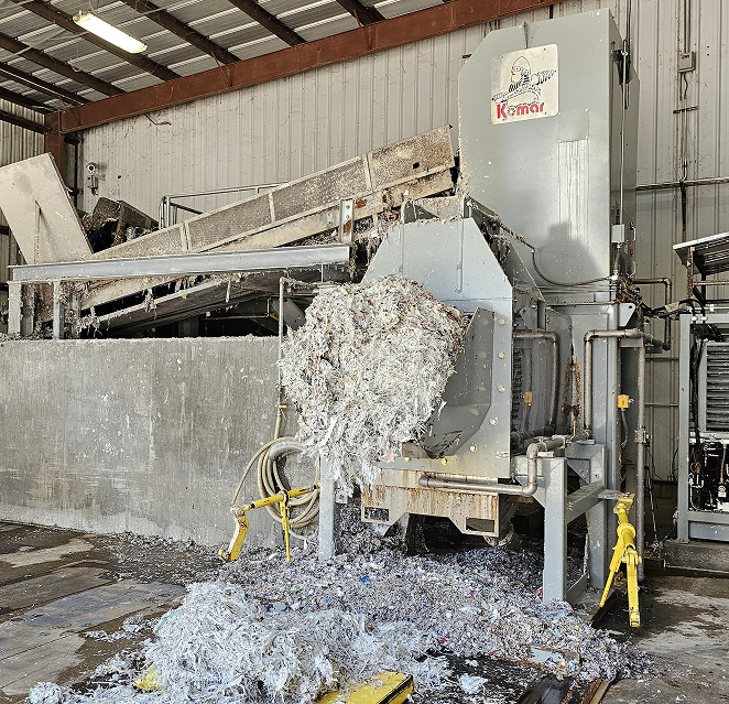 “Our facility is a 110,000-square-foot operations center for Goodwill of Southwestern Pennsylvania. We get between 1.2 to 1.5 million pounds of material a day, and tonnage increases significantly during the summer. The Komar auger has increased daily soft trash, wood pallets, and general trash efficiency by 30% and 40% with furniture. I love to give shock-and-awe tours to show off the Komar Auger, which compacts 8.5 to 9 tons into each payload.”